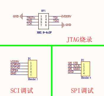 當(dāng)需要離線燒錄程序時(shí),通過5V、TX、RX、IOPE4、GND信號(hào)測(cè)試焊盤,借助進(jìn)芯的離線燒錄工具可實(shí)現(xiàn)快速的脫機(jī)燒錄。