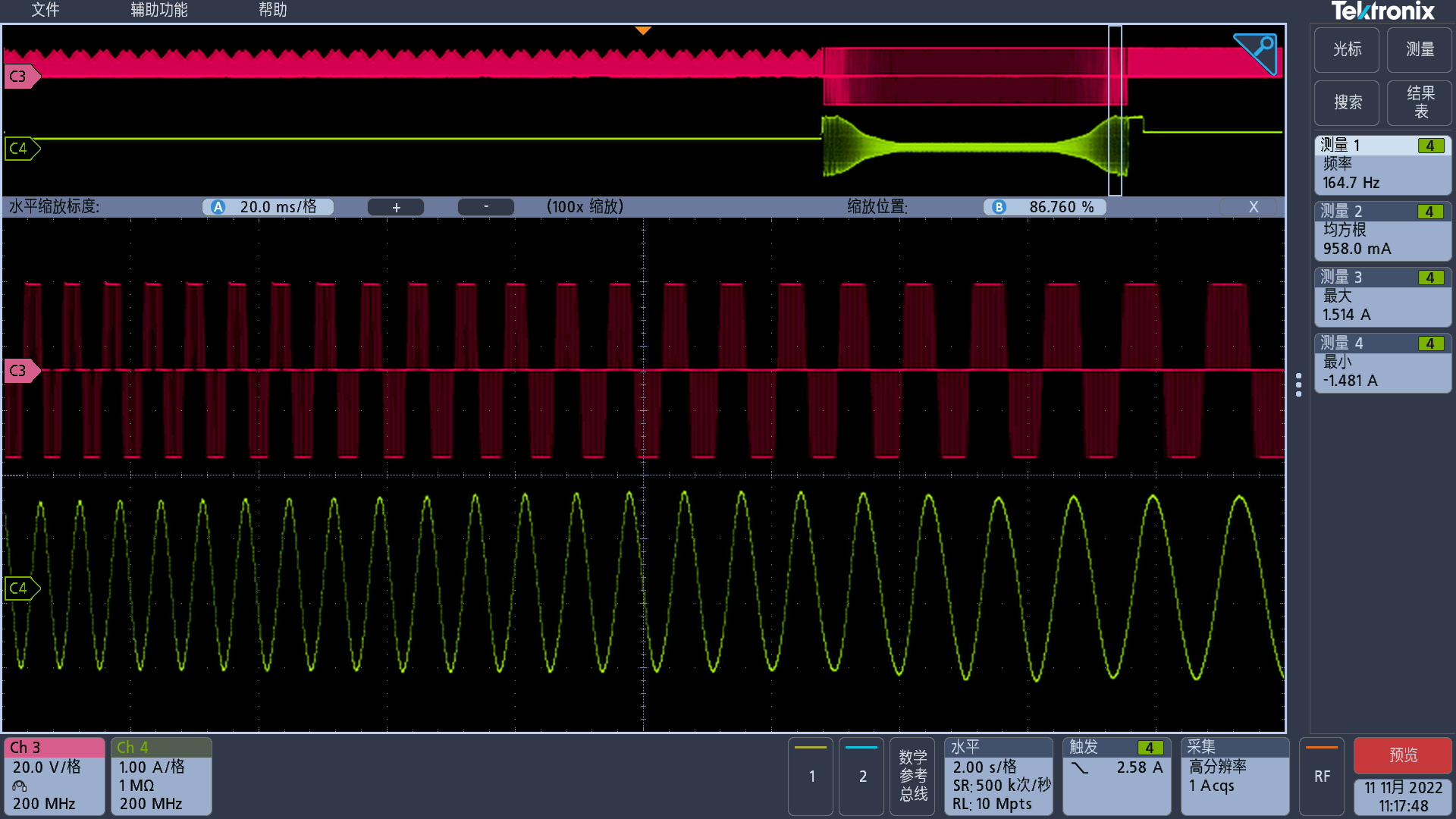 基于以上應(yīng)用介紹,我司設(shè)計(jì)了一塊用于驅(qū)動(dòng)12V兩相四線步進(jìn)電機(jī)的電子水閥的控制DEMO板。板卡實(shí)物圖和實(shí)測(cè)波形圖如下圖所示: