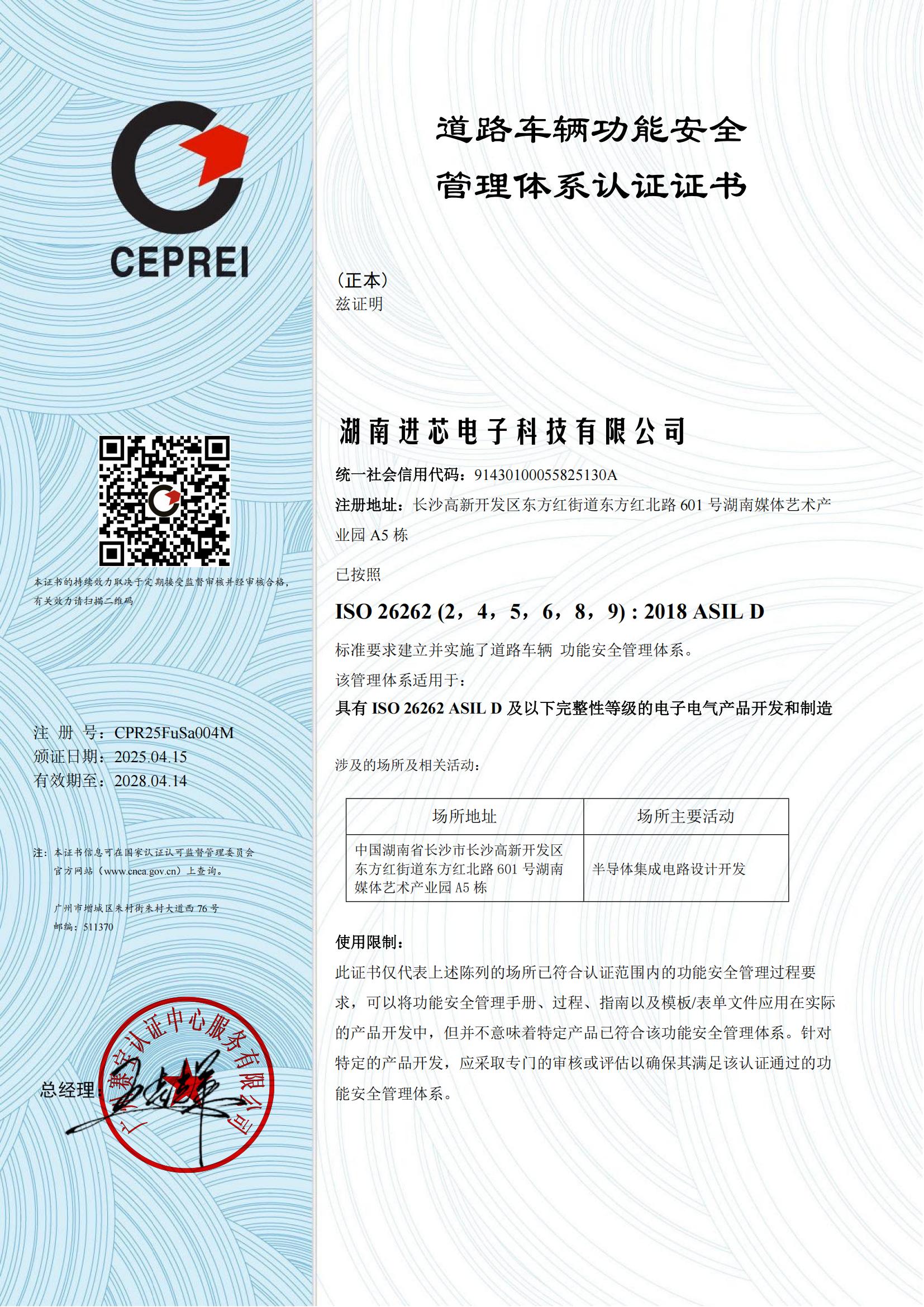 近日,進(jìn)芯電子成功獲頒“ISO 26262 道路車(chē)輛功能安全管理體系認(rèn)證證書(shū)”,此次認(rèn)證標(biāo)志著進(jìn)芯電子在功能安全管理體系方面達(dá)到了全球公認(rèn)的標(biāo)準(zhǔn)。