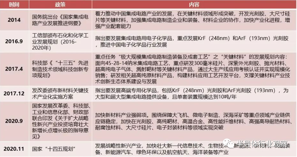 大基金之外,近年來(lái)國(guó)家還推出了一系列政策來(lái)促進(jìn)半導(dǎo)體材料行業(yè)的發(fā)展。